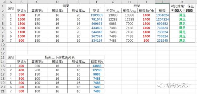 注:刚度与自重均应复核,一般来说,桁架的自重要小于等代钢梁的自重。